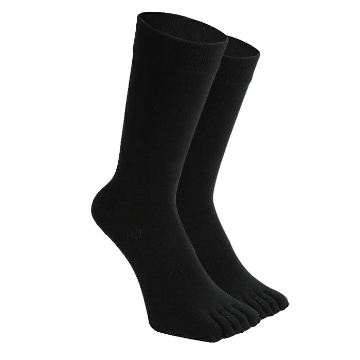 【 20時間履いても臭くならない】 5本指 クルー丈 メンズ 25-28cm 1足 右右セット 黒